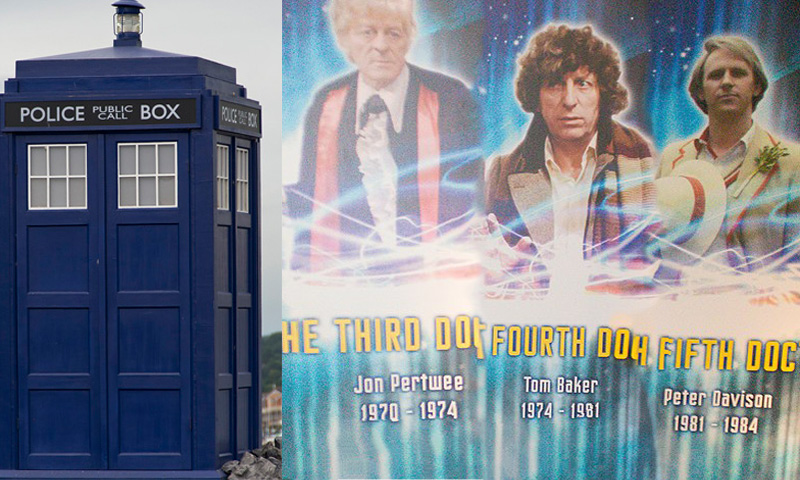 (Top images LtoR: the Tardis – Steve Collis at Wikimedia Commons / CC BY-SA 2.0, three Doctors – Gareth Milner at Flickr.com / CC BY 2.0)